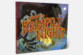 Tonight Is Krampus Night! is a 11x9.5”, 38 page, paper over board picture book with a matte finish and spot UV on the cover.