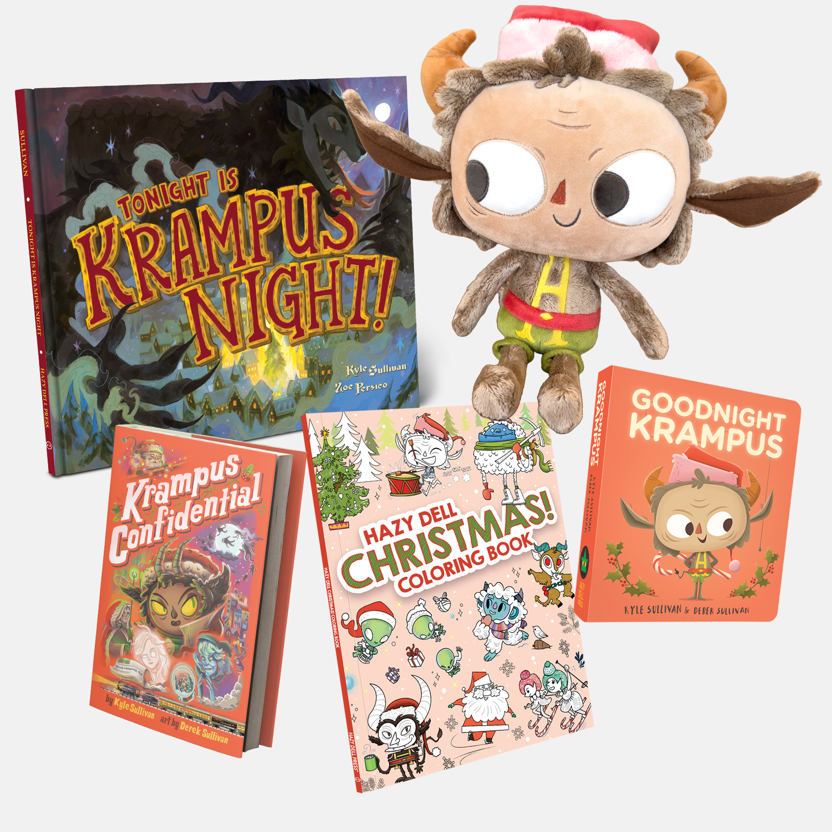 The Goodnight Krampus plushie is 12.5" x 10" and certified by a third-party safety board to be safe for all ages. All Hazy Dell Plushies are made from 100% safe and tested polyester.